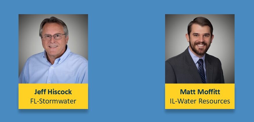 Matt Moffitt, PE, CFM, Water Resources – Illinois: Matt has 19 years of experience in the planning, analysis, modeling, design, bidding, and construction (including design‑build) of open and closed drainage systems, detention and retention facilities, native area restoration, roadways, utilities, and other civil site improvements, with a strong focus on sustainability and resiliency.